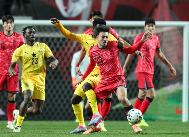 가나 선수들이 한국의 스리백 전술에 혼란을 겪었지만,