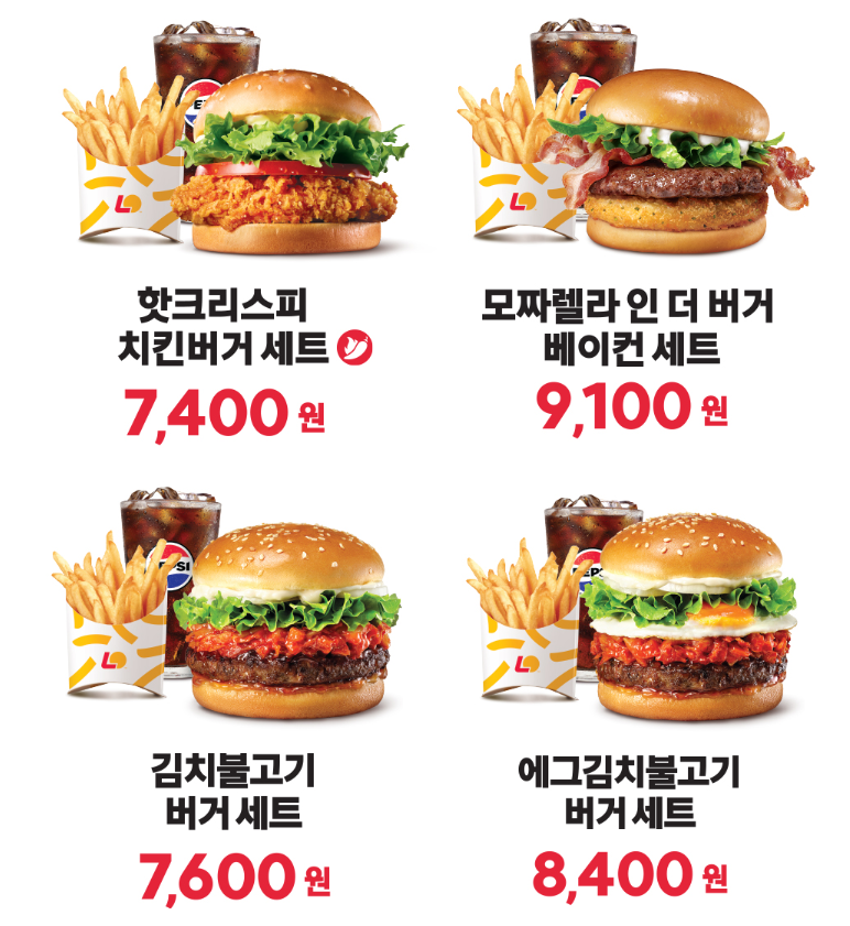 대표적인 버거 메뉴를 세트로 즐기면서도 저렴한 가격, 예측 가능한 운영 시간, 전국 대부분 매장에서 이용 가능하다는 점이