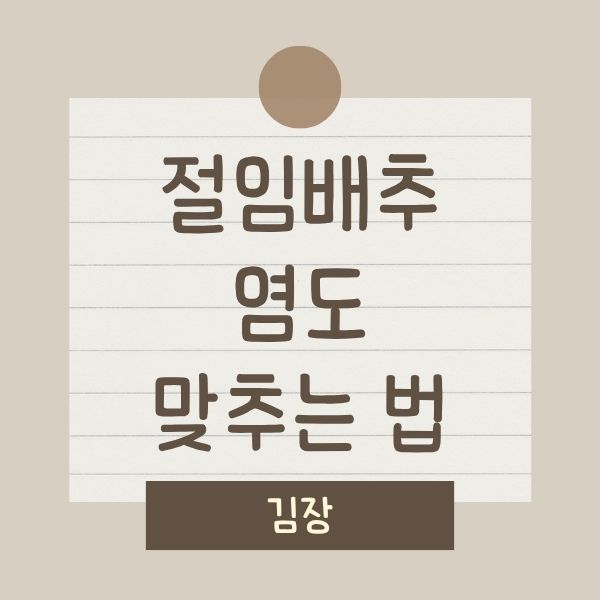 김장할 때 절임배추의 염도는 김치 맛을 결정하는 핵심 요소입니다. 너무 짜면 익기 전에 짜서 먹기 어렵고, 너무 싱거우면 쉽게 쉬어버리죠. 이번 글에서는 절임배추 염도 맞추는 법을 단계별로 소개합니다. 초보자도 간단한 비율 계산만으로 완벽한 절임배추를 만들 수 있습니다.