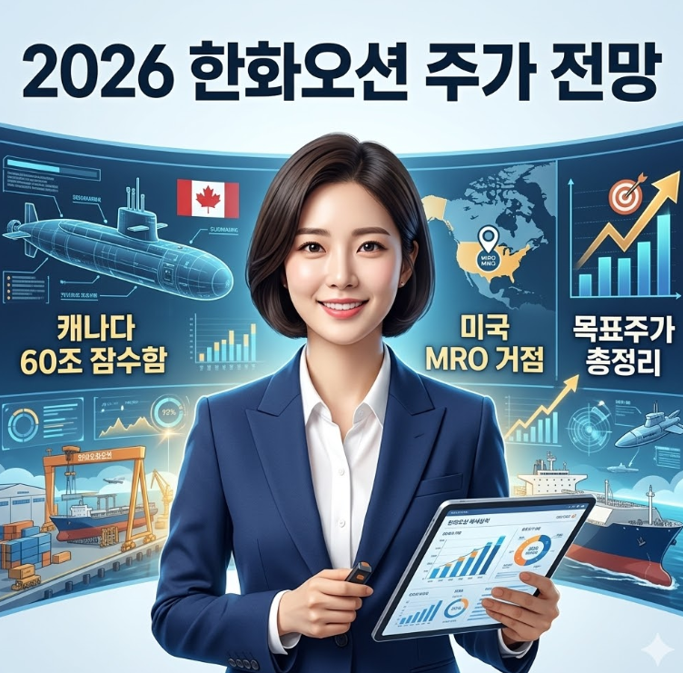 - 수주 전략: 한화오션은 2026년 2월 캐나다 현지 대학 및 조선소와 기술이전 MOU를 체결하는 등 경제적 패키지를 제시하며 독일(TKMS)과 막바지 경합 중입니다. 2026년 하반기 우선협상대상자 선정 시 주가는 다시 한번 '퀀텀 점프'할 것으로 보입니다.